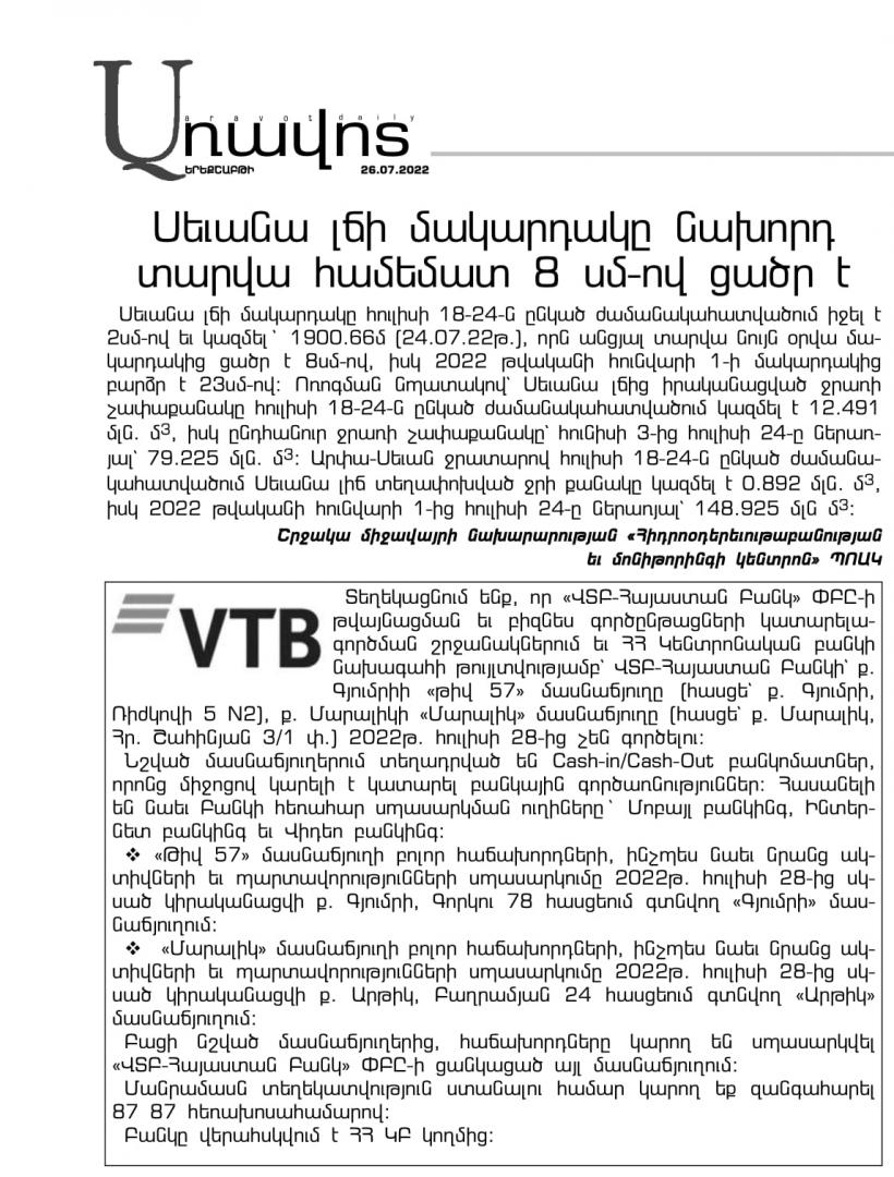 Газета ''Аравот''- 26 июля 2022г.