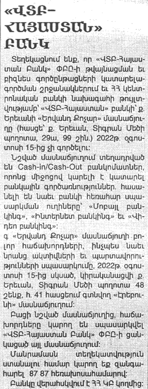 «Ժողովուրդ» օրաթերթ - 2022թ. оգոստոսի 5